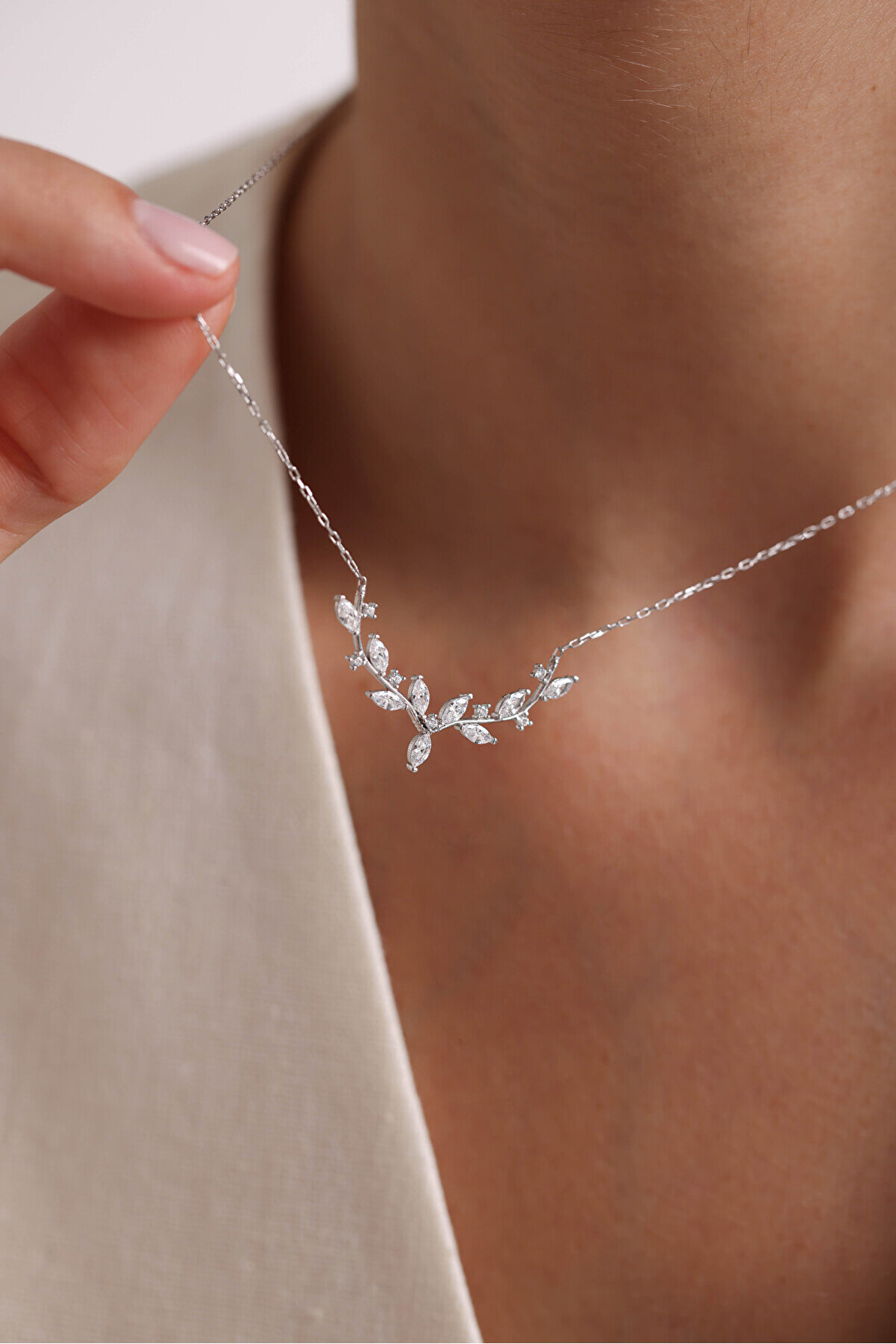 NEREZE 925 Ayar Gümüş Rodyum Kaplama Mekik Taşlı Zarif Sarmaşık Kolye